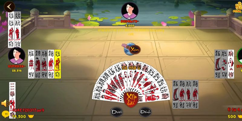 - Có 5 người tham gia chơi: Hệ thống sẽ chia cho mỗi người 20 quân bài, các quân còn dư đặt vào đĩa (Nọc). Nhà cái được đánh đầu tiên và bốc một quân bài Nọc. Lần lượt các người chơi còn lại tiến hành đánh và bốc bài từ nọc. Ván bài sẽ kết thúc khi bài Nọc còn 5 quân và chưa có ai chọn ù bài.